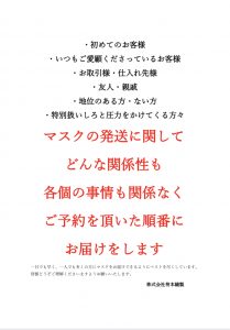 中には、直接来社をされ、『その目の前にあるマスクを売ってくれたらいいじゃないか!!!』とおっしゃられる方もいらっしゃいます。