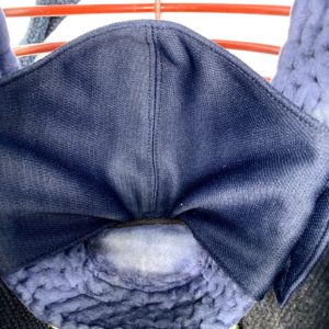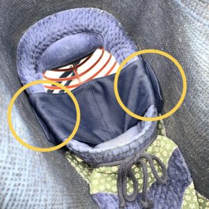 (3)面金に固定ができたら、顔の側面に密着する「内輪」の際にマスクの両サイドを挟み込みます。