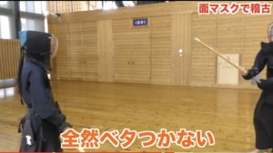 この件に関しては、全日本剣道連盟に確認済みでして、実質的に鼻と口を覆い、マスクとしての機能を発揮するものであれば面マスクとして使用しても差し支えないとの回答を頂戴しております。